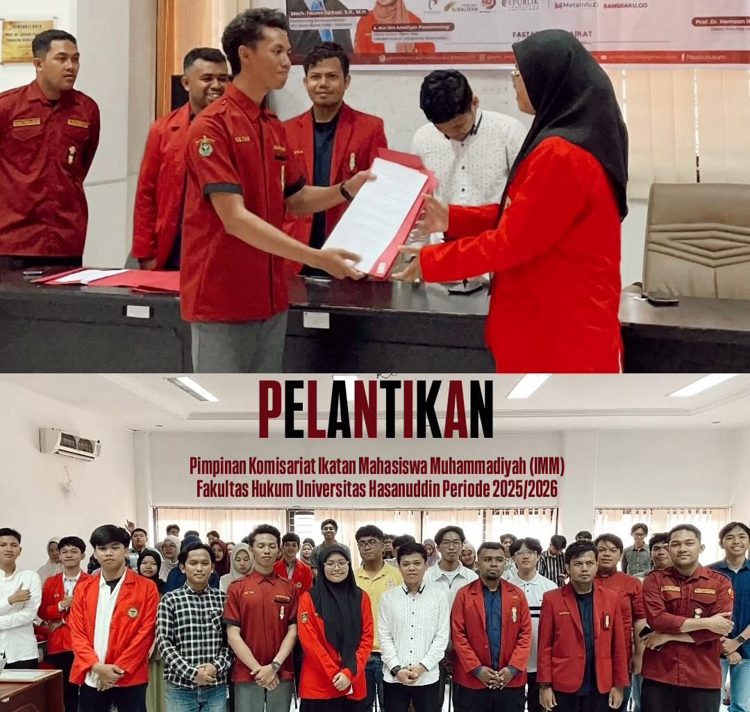 Upos.id, Makassar- Pimpinan Komisariat (PK) Ikatan Mahasiswa Muhammadiyah (IMM) Fakultas Hukum (FH) Universitas Hasanuddin (Unhas) Resmi menggelar Pelantikan Pengurus untuk masa kerja 2025-2026.