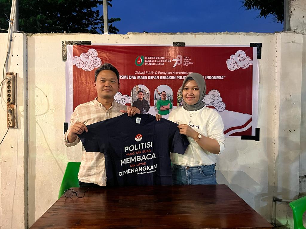 Kegiatan ini ditutup dengan penyerahan baju kepada narasumber oleh Saenab (pengurus SHI Sulsel) bertuliskan “Politisi yang tak suka membaca, tak layak di menangkan” sebagai simbol untuk memassifkan edukasi politik bagi para politisi dan masyarakat.