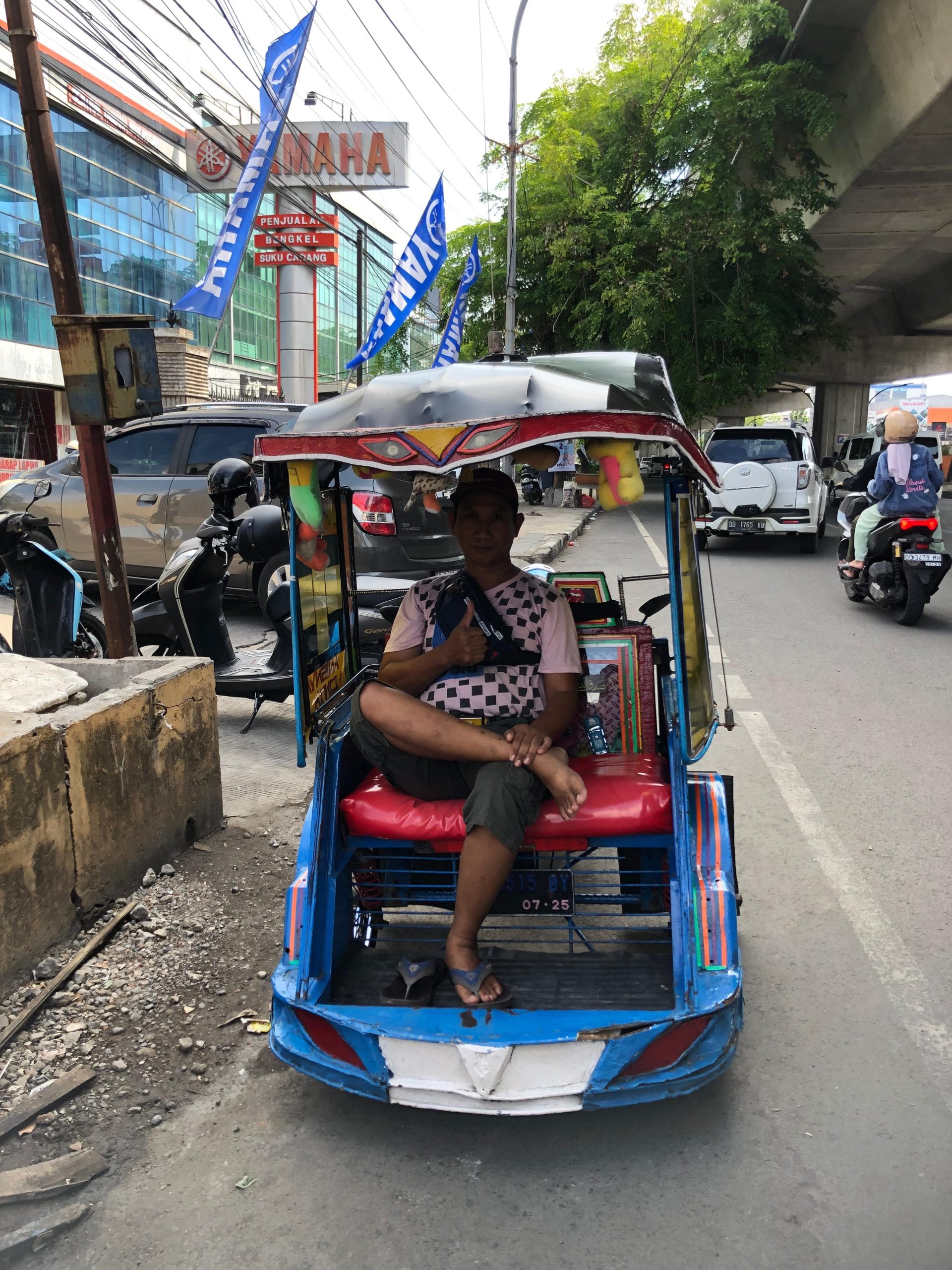 Walaupun sudah berumur 53 tahun, bapak Basri tetap semangat untuk Driver Bentor mulai pukul 09:00 hingga 17:00 malam.