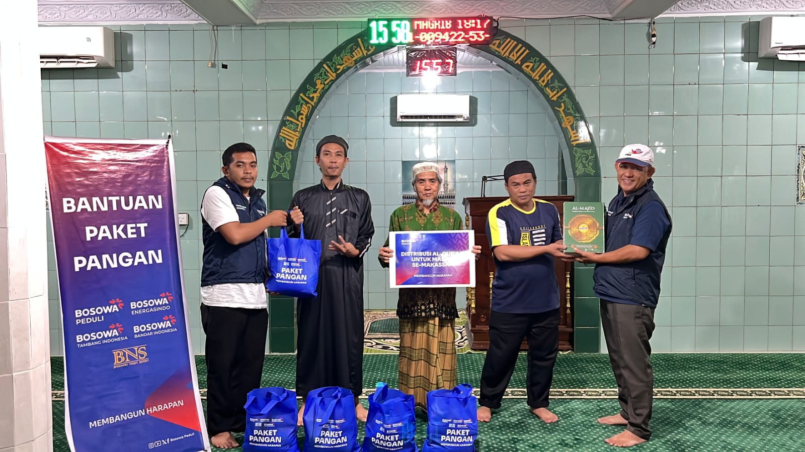 Pada tahap ini, Bosowa Peduli tidak hanya menyalurkan paket pangan, tetapi juga mendistribusikan Al-Qur’an kepada masjid-masjid di Kota Makassar sebagai upaya memperkuat nilai spiritual dan mendukung aktivitas keagamaan jamaah.