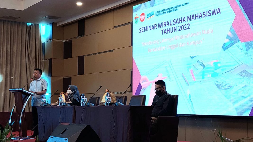 Upos.id, Makassar – Kelompok Kerja (Pokja) Program Mahasiswa Wirausaha (PMW) Universitas Hasanuddin (Unhas) menggelar Seminar Wirausaha Mahasiswa tahun 2020. Seminar yang mengangkat tema “Mendorong Lahirnya Wirausaha Muda Berkarakter Unggul Dari Kampus” ini diadakan di Hotel Aston, kota Makassar (3/7/2022).