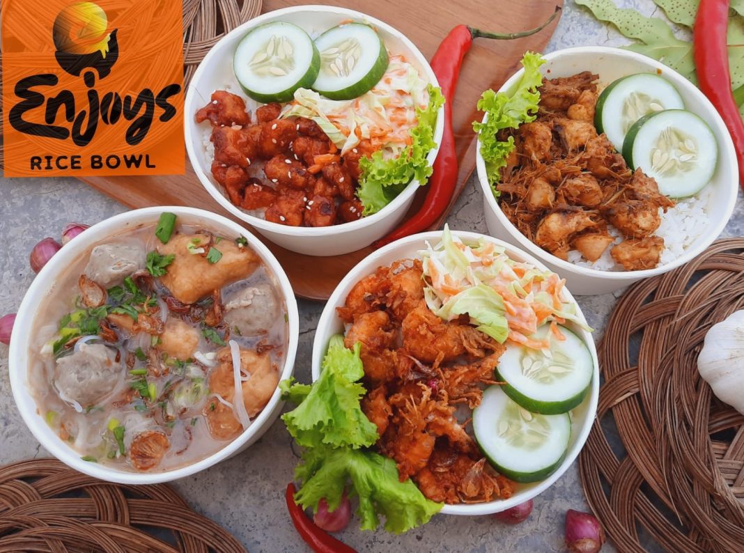 “Enjoys.id Rice Bowl sendiri telah terdaftar di berbagai aplikasi seperti gofood, grabfood dan sementera ini sedang menunggu konfirmasi shopeefood,” terang Emmi sapaan akrabnya
