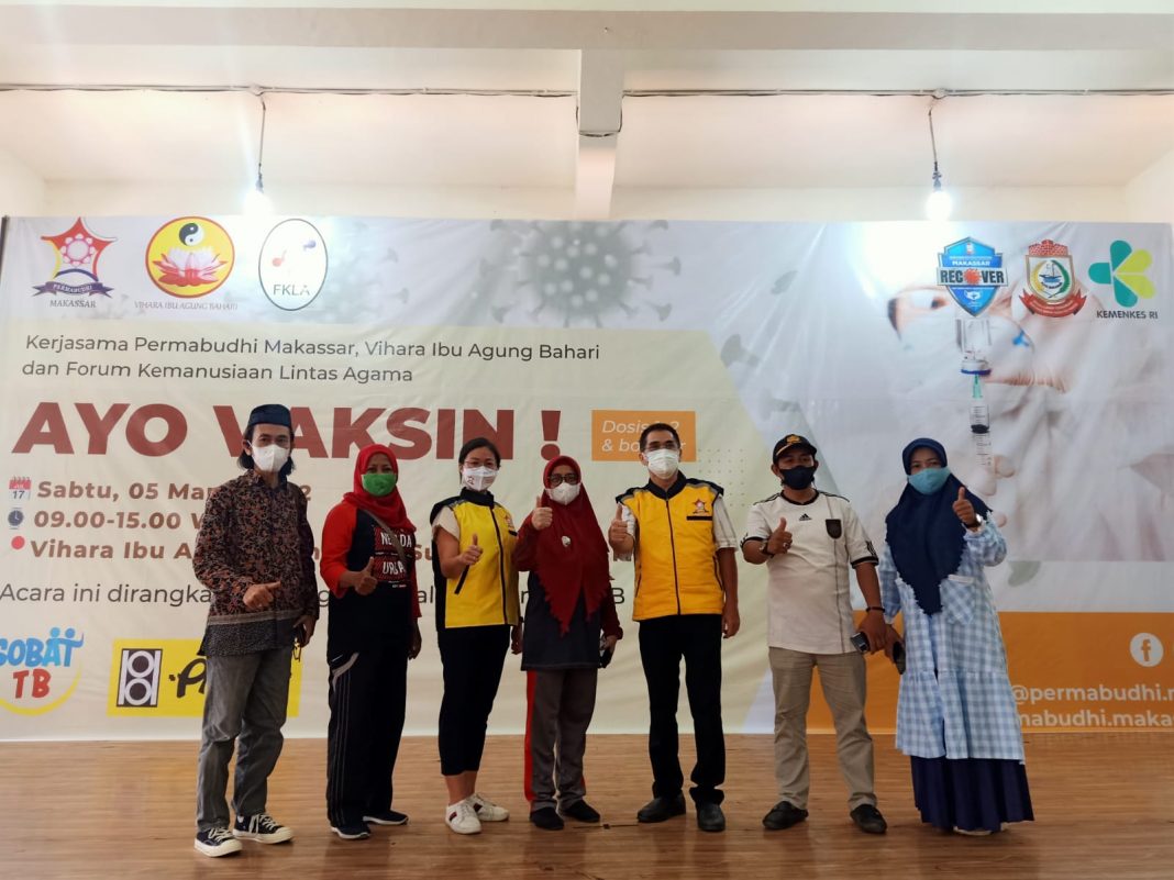 Diketahui, Permabudhi Makassar dalam menggelar kegiatan vaksinasi di Vihara Ibu Agung, Jalan Sulawesi Nomor 41, Sabtu 5 Maret 2022. Vaksinasi ini dimaksudkan untuk melengkapi dosis vaksin bagi tokoh Agama, Petugas rumah ibadah, secara khusus.