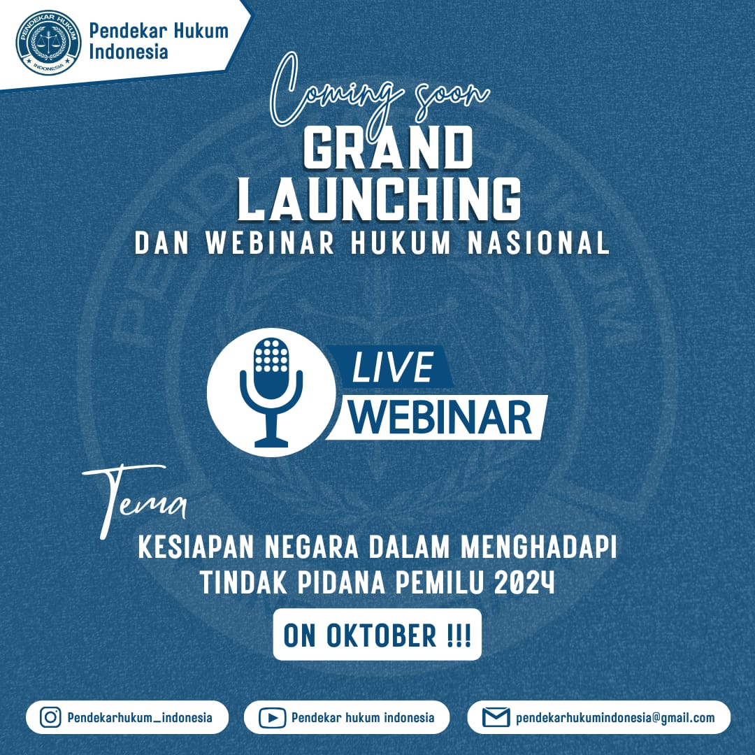 Menurut Ridwan Selaku Founder Komunitas Pendekar Hukum Indonesia mengungkapkan bahwa Selain Webinar Hukum Nasional kegiatan ini juga akan sekaligus melaunching secara resmi PENDEKAR HUKUM INDONESIA.