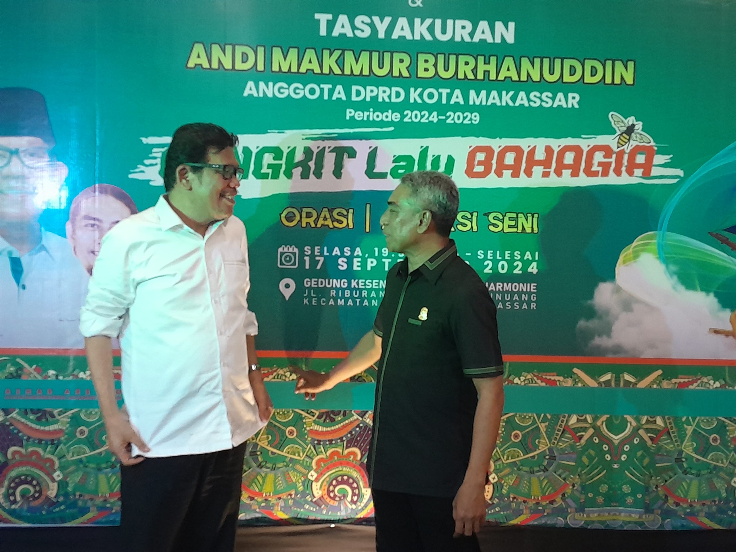 Sebelumnya acara tasyakuran ini menghadirkan konstituen AMB dari Kecamatan yakni Mamajang, Mariso dan Tamalate menyambut Ketua DPW PKB Sulsel diteras gedung peninggalan kolonial Belanda ini dengan tari Paraga, sementara di ruang lobi sudah berkumpul tamu yang menikmati kue-kue tradisional dan musik langgam makassar.