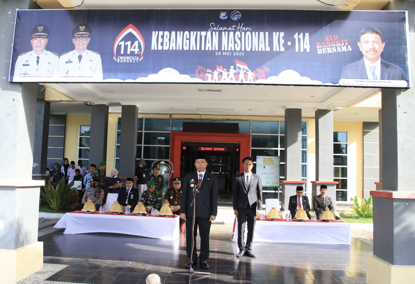 Selaku Inspektur upacara, Andi Utta sapaan akrab bupati membacakan sambutan seragam Menteri Komunikasi dan Informatika (Menkominfo) Johnny G. Plate. Dalam sambutannya Menkominfo mengatakan tahun ini, kita memperingati Hari Kebangkitan Nasional yang ke-114. Pada tahun ini, “Ayo Bangkit Bersama” menjadi tema peringatan Hari Kebangkitan Nasional sebagai bentuk seruan agar kita bisa bangkit bersama dari pandemi COVID-19 yang sudah melanda dua tahun terakhir.