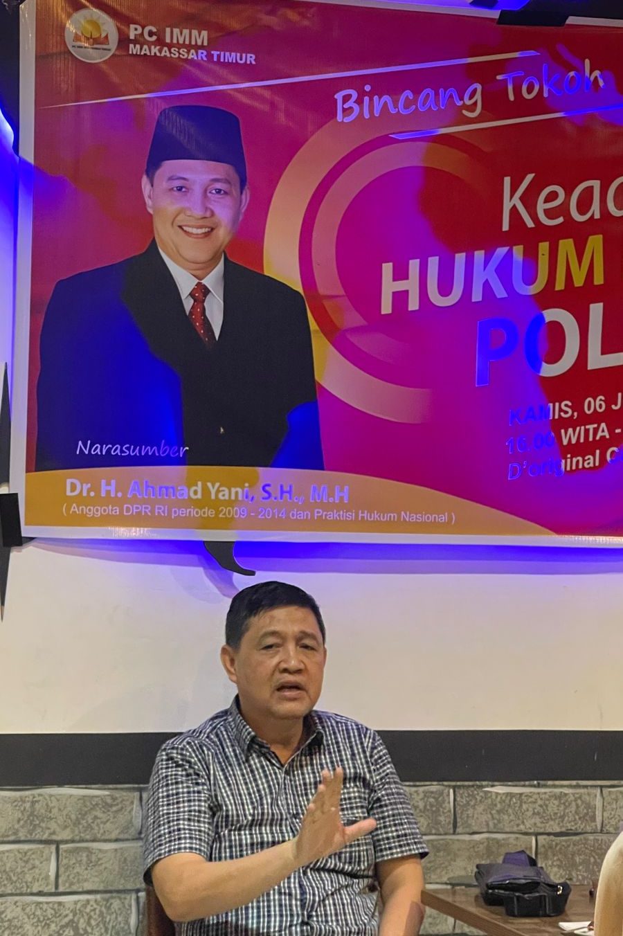 Upos.id, Makassar- Pimpinan Cabang Ikatan Mahasiswa Muhammadiyah Makassar Timur (PC IMM Maktim) sukses menggelar Bincang Tokoh dengan tema Keadilan Hukum di Tahun Politik menghadirkan Anggota DPR RI Periode 2009-2014 sekaligus Advocat Nasional Bapak Dr. Ahmad Yani, S.H., M.H di D’original Cafe & Resto pada kamis (06/07/2023). Bincang tokoh tersebut dipandu oleh Ketua PC IMM Maktim Taufik Hidayat, S.H. Diskusi tersebut dihadiri oleh mahasiswa lintas kampus dan organisasi kepemudaan.