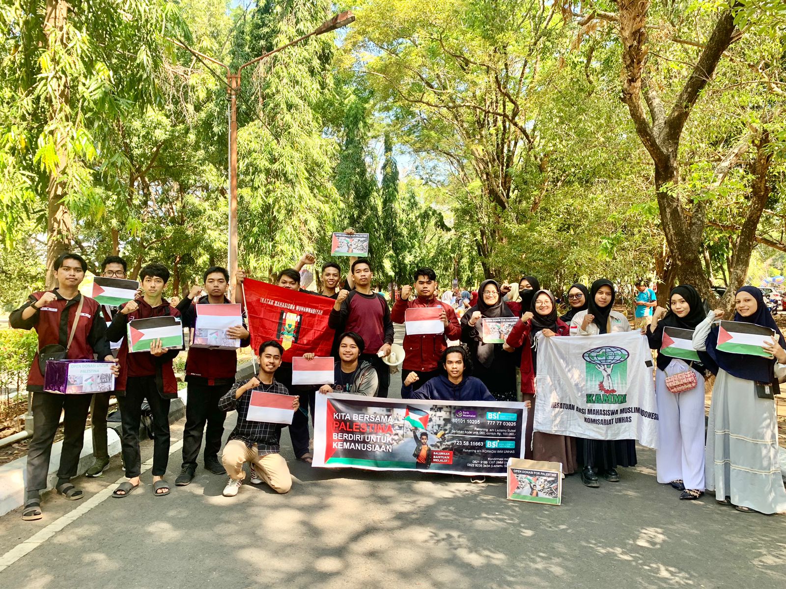 “Aksi kemanusiaan untuk palestina ini, selain IMM juga ikut bergabung beberapa oraganisasi seperti Kesatuan Aksi Mahasiswa Muslim Indonesia Unhas (Kammi), LDK MPM Unhas, dan Forbes Unhas serta Mahasiswa yang berasal dari Palestina”, jelas Yusril yang juga Ketua Umum Pimpinan Komisariat IMM FH Unhas.