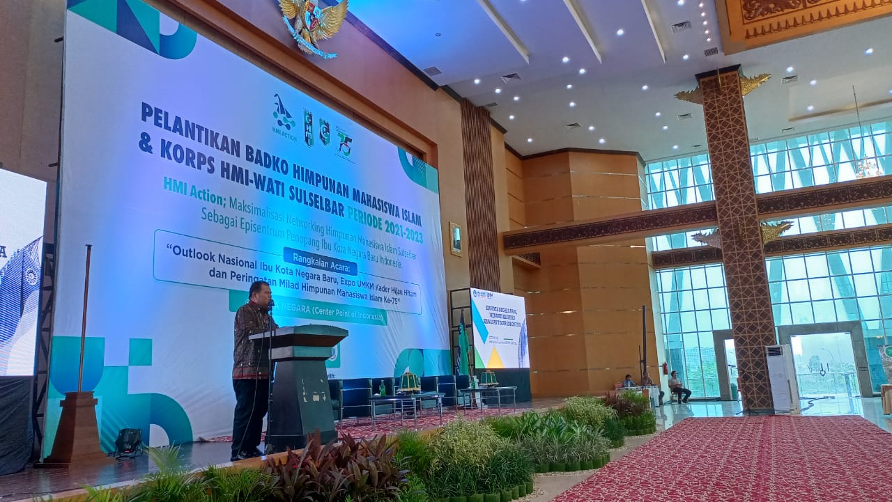 MAKASSAR.UPOS.ID — Ketua Pimpinan Wilayah Ikatan Sarjana Nadhlatul Ulama (ISNU) Sulawesi Selatan, Prof Husain Syam (PHS) didaulat membawakan orasi ilmiah di pelatikan pengurus Badan Koordinasi (BADKO) Himpunan Mahasiswa Islam (HMI) Sulselbar.