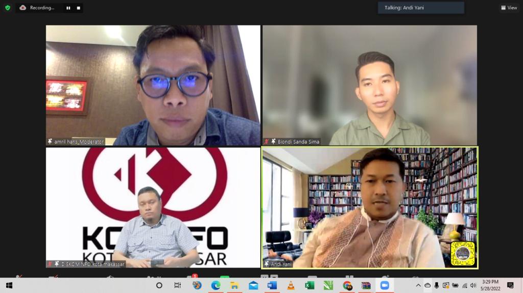 Webinar ini menghadirkan narasumber yakni Mahyuddin, S.STP., M.AP. selaku Kepala Dinas Komunikasi dan Informatika Kota Makassar), Biondi Sanda Sima (Digital Government Consultant di World Bank, Indonesia), serta Andi Rahmat Hidayat, S.Sos., M.Si (Dosen Administrasi Publik, Universitas Hasanuddin | PhD Candidate Public Administration at Wegeningen University, the Netherlands). Kegiatan ini dipandu oleh Amril Hans, M.Si, M.PA.