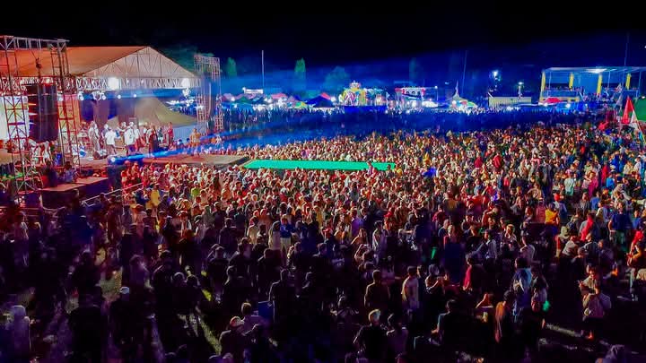 Lapangan Wita Mori sudah penuh sesak sejak sore hari. Suasana semarak ini terus berlangsung hingga sederet artis ibukota tampil bergantian menghibur masyarakat pada malam hari.