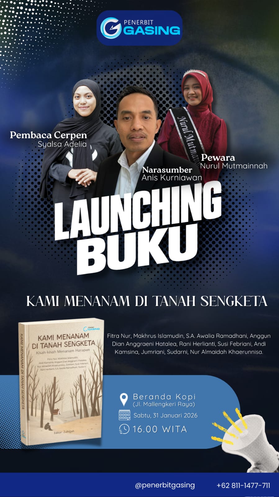 Informasi lebih lanjut terkait kegiatan launching buku ini dapat diakses melalui akun Instagram @penerbitgasing atau melalui kontak +62 811-1477-711. (**)