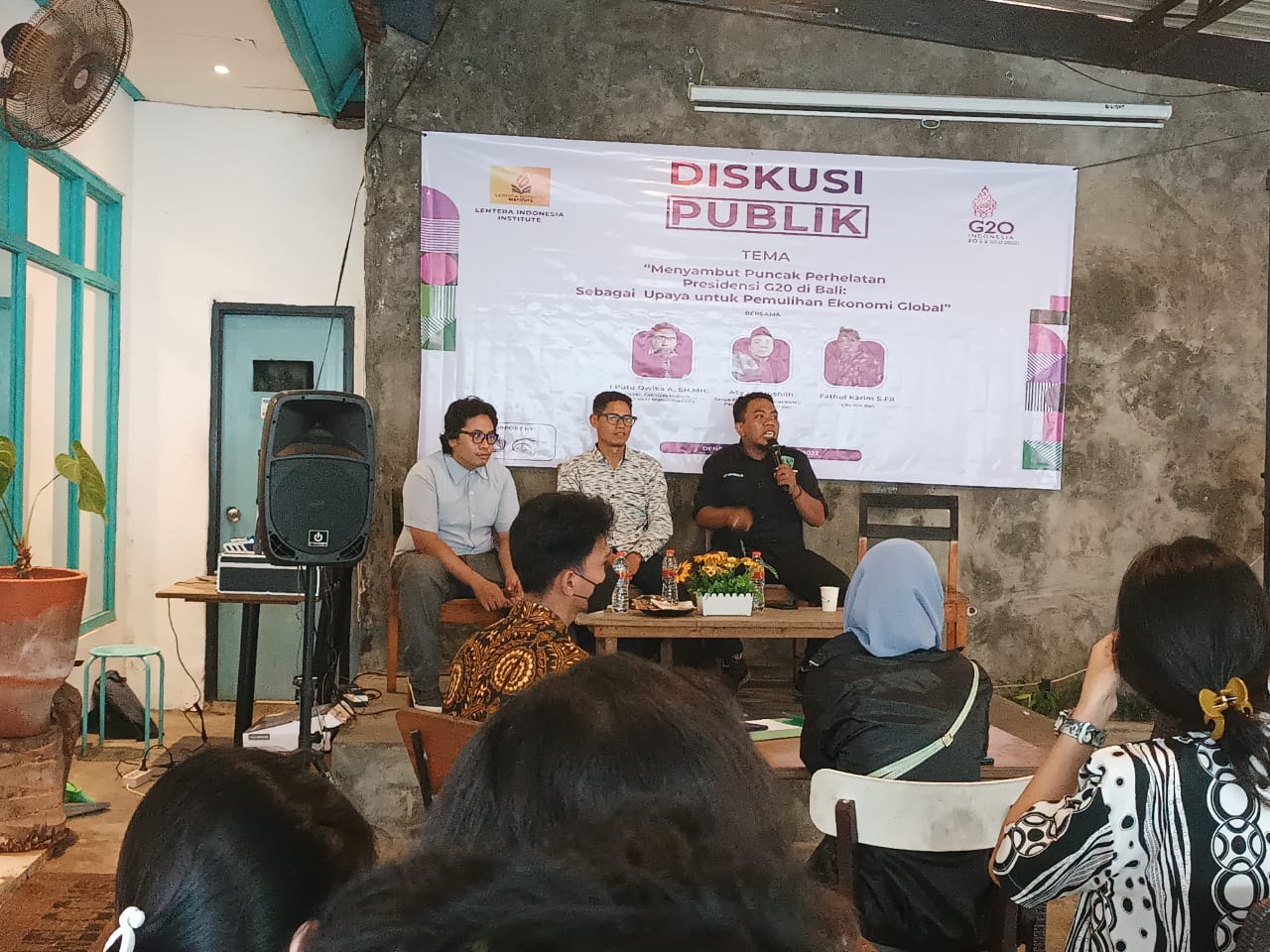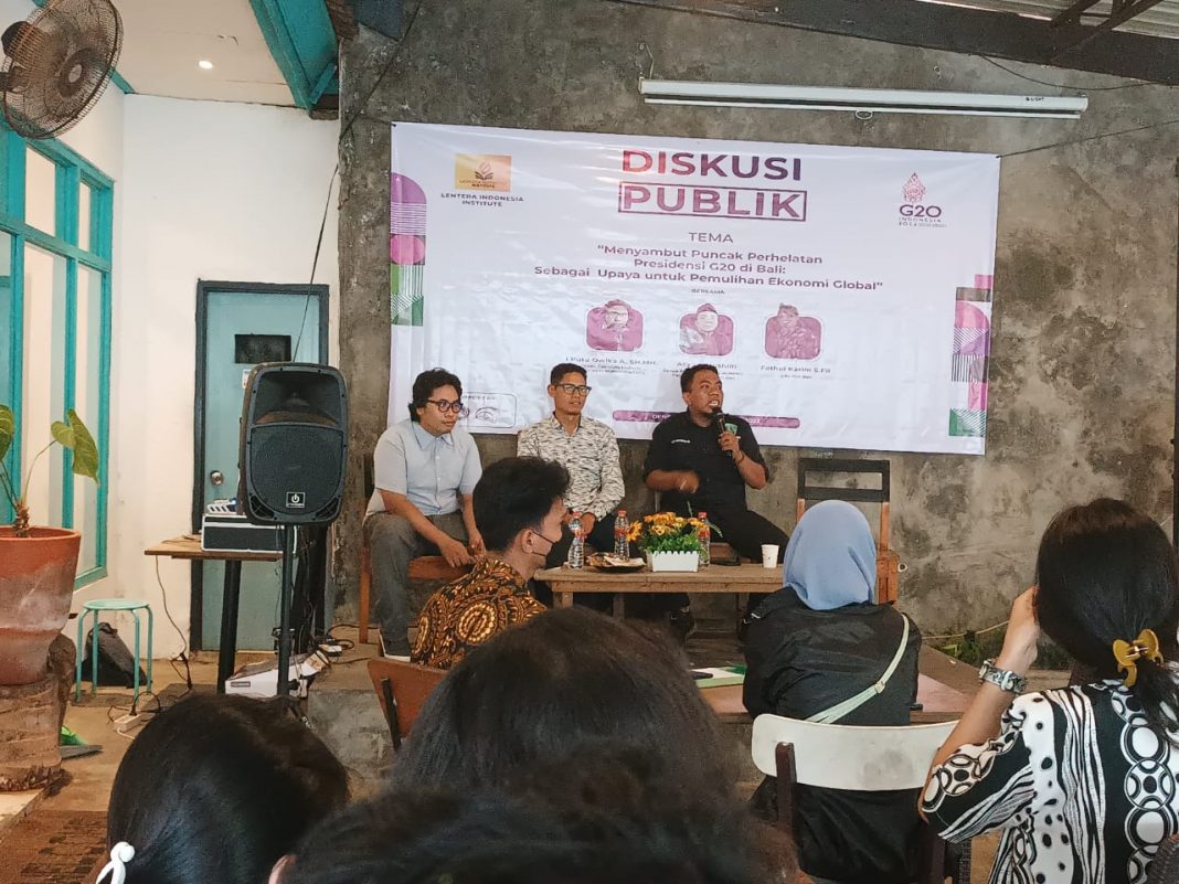 Dialog Publik yang mengusung tema; Menyambut Puncak Perhelatan Presidensi G20 di Bali: Sebagai Upaya untuk pemulihan Ekonomi Global. Ketua pelaksana dalam sambutannya menegaskan bahwa diskusi publik ini bertujuan untuk mendukung terselenggaranya G20 dengan aman dan lancar.