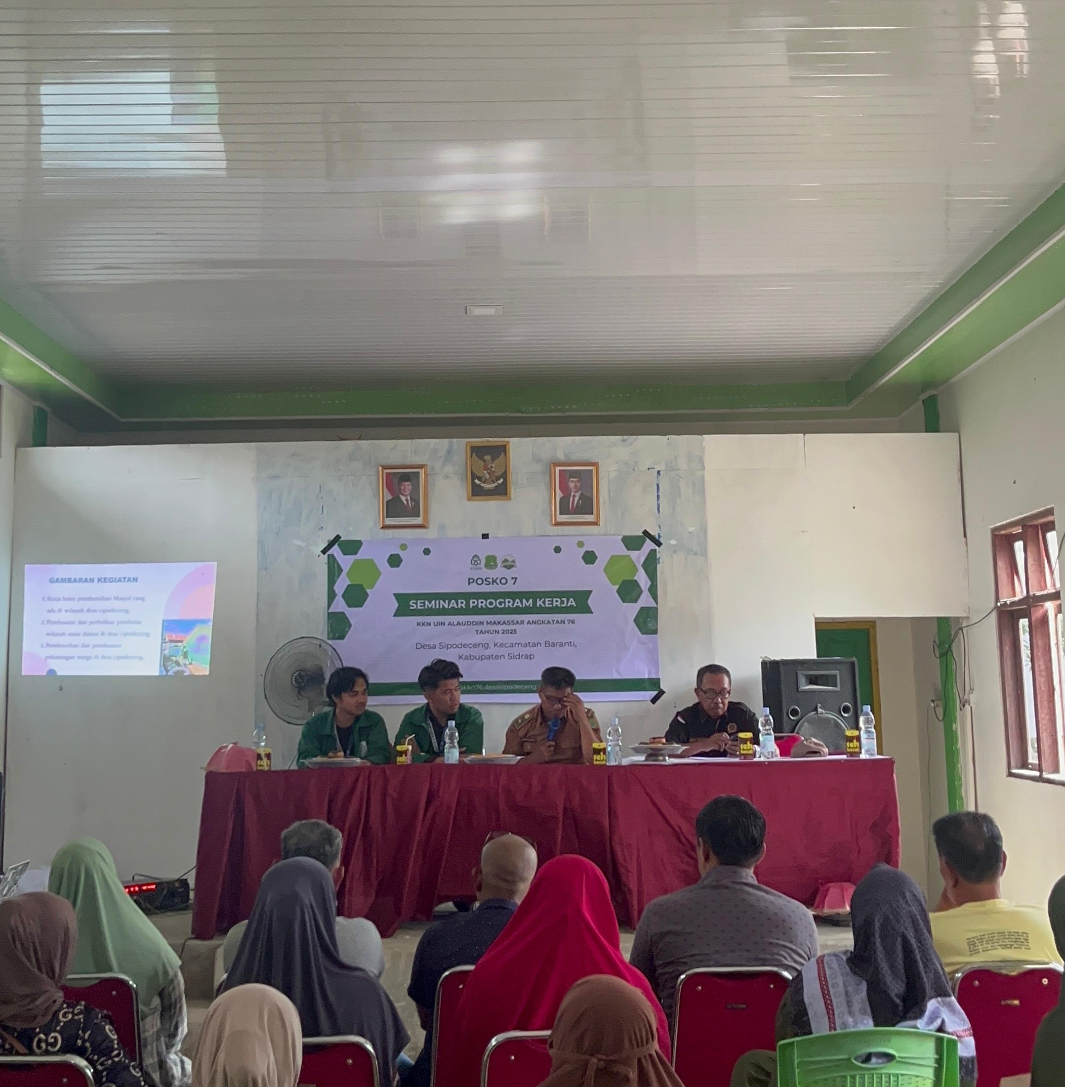 Upos.id, Sidrap, 13 Januari 2025 – Mahasiswa Kuliah Kerja Nyata (KKN) Universitas Islam Negeri Alauddin Makassar (UINAM) Angkatan 76 Posko 7 Desa Sipodeceng menggelar Seminar Program Kerja (Proker) dengan tema utama pemberdayaan lahan pangan masyarakat sebagai program unggulan. Acara ini berlangsung di aula Kantor Desa Sipodeceng dan dihadiri oleh masyarakat serta tokoh-tokoh penting setempat.