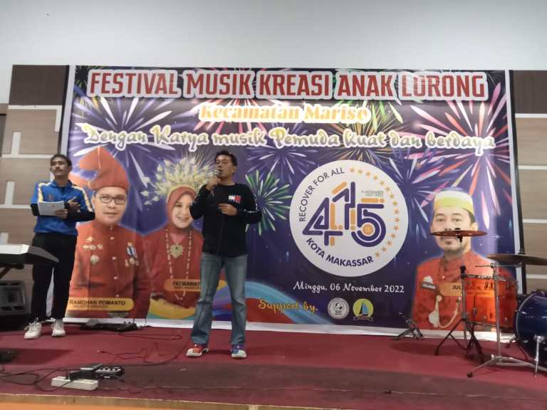 Dalam sambutannya, Camat Mariso menyampaikan bahwa Festival kreasi musik anak lorong yang dilaksanakan tentunya diwakili pemuda-pemudi di beberapa lorong yang ada di kecamatan Mariso untuk menggali bakat anak anak muda kita untuk bisa menyalurkan kreativitas pada kegiatan kreasi musik anak lorong.