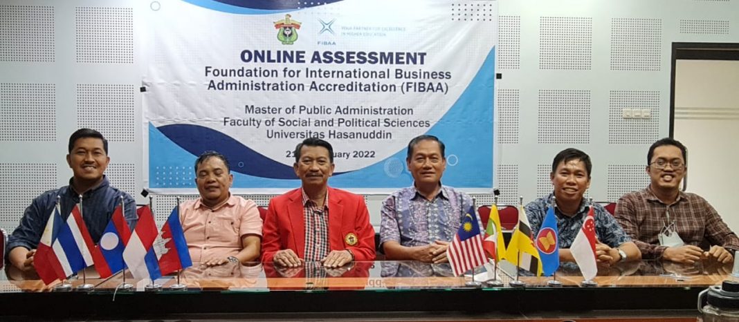 MAKASSAR.UPOS.ID – Program Magister Administrasi Publik, Fakultas Ilmu Sosial dan Ilmu Politik (FISIP) Universitas Hasanuddin (UNHAS) mengikuti akreditasi International Foundation for International Business Administration Accreditation (FIBAA). Kegiatan ini berlangsung pada tanggal 21 – 23 Februari 2022 secara virtual via zoom meeting.