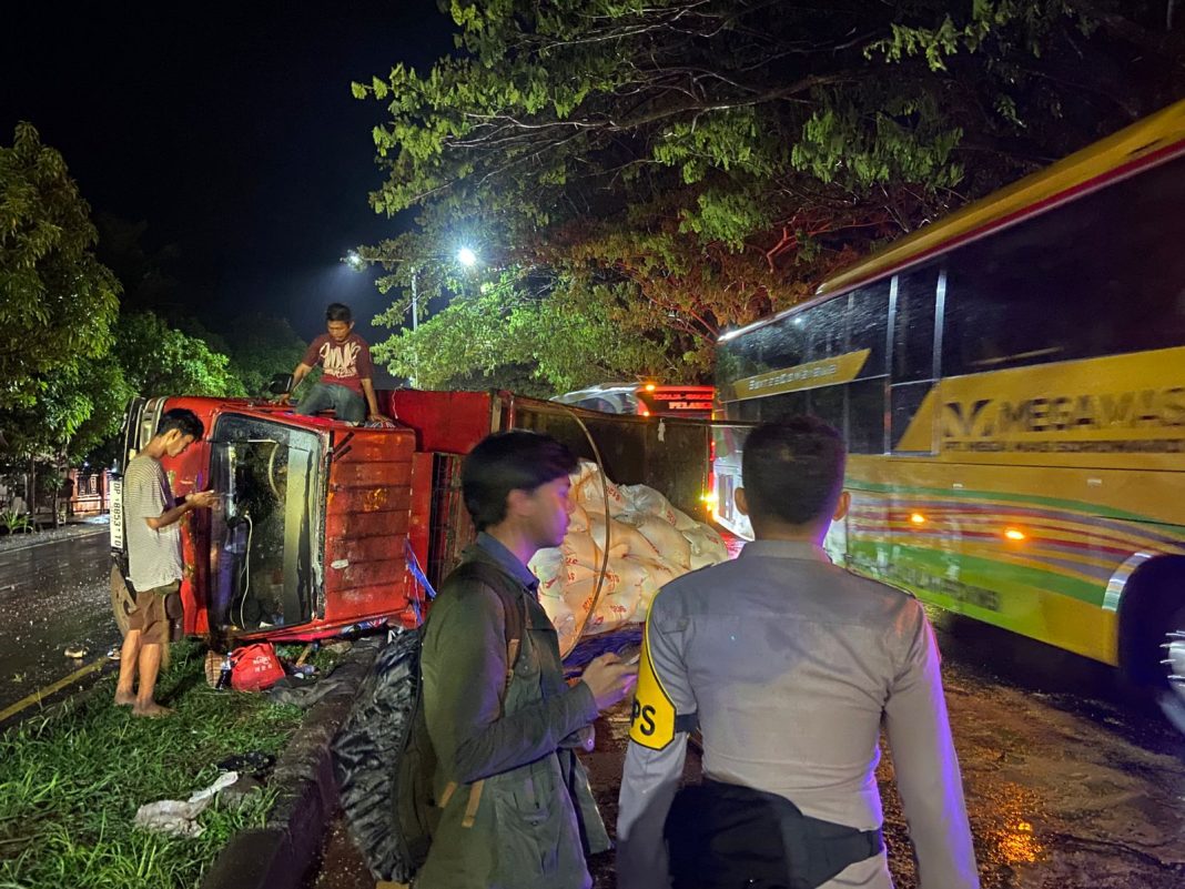 Truk Terbalik di Boddie, Kabupaten Pangkep