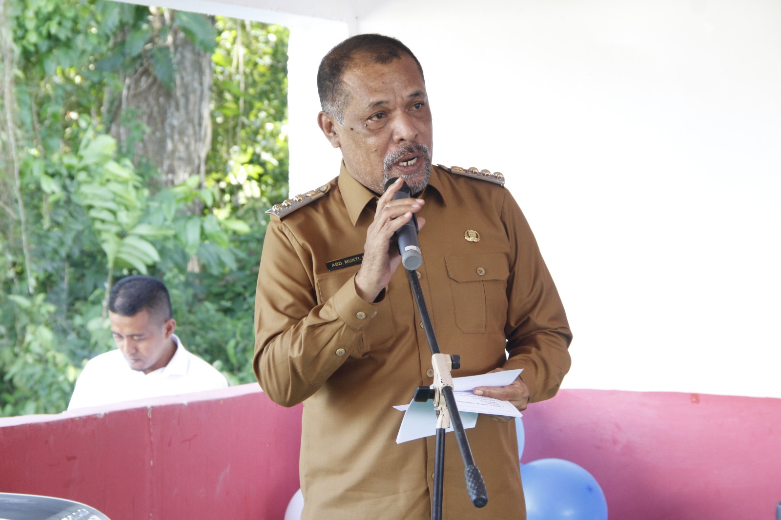 Bupati Seram Bagian Timur Abdul Mukti Keliobas, saat memberikan sambutan pada pelaksanaan Peluncurkan Intervensi Serentak.(Foto Istimewa)