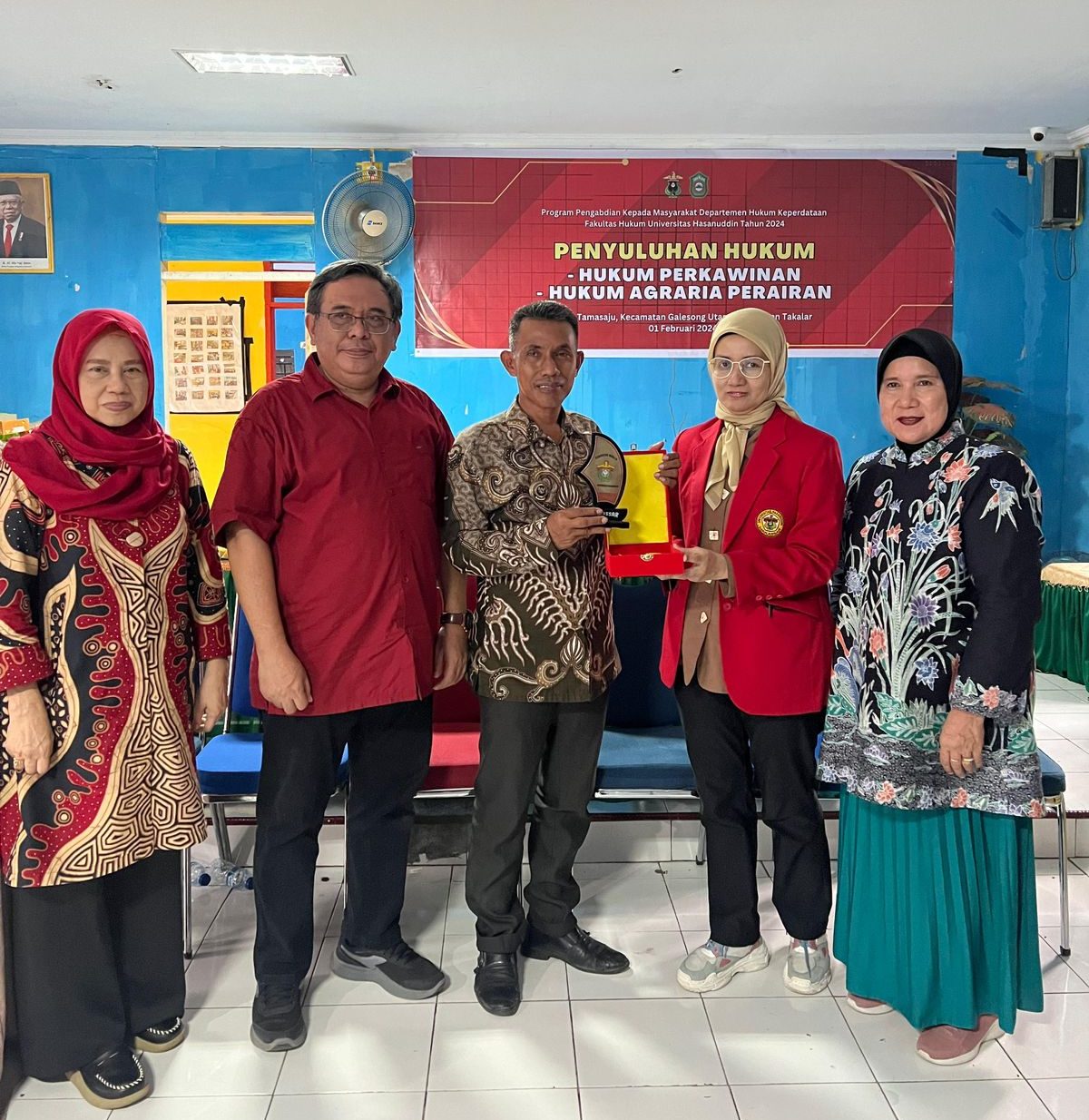 Takalar, Upos.id- Departemen Hukum Keperdataan Fakultas Hukum Universitas Hasanuddin (FH Unhas) menggelar penyuluhan hukum tentang hukum agraria perairan dan hukum perkawinan yang dilaksanakan di Kantor Desa Tamasaju, Kecamatan Galesong Utara pada kamis (2/02/2024). Penyuluhan ini sebagai bentuk pengabdian kepada masyarakat yang merupakan salah satu nilai dari Tri Dharma Perguruan Tinggi.