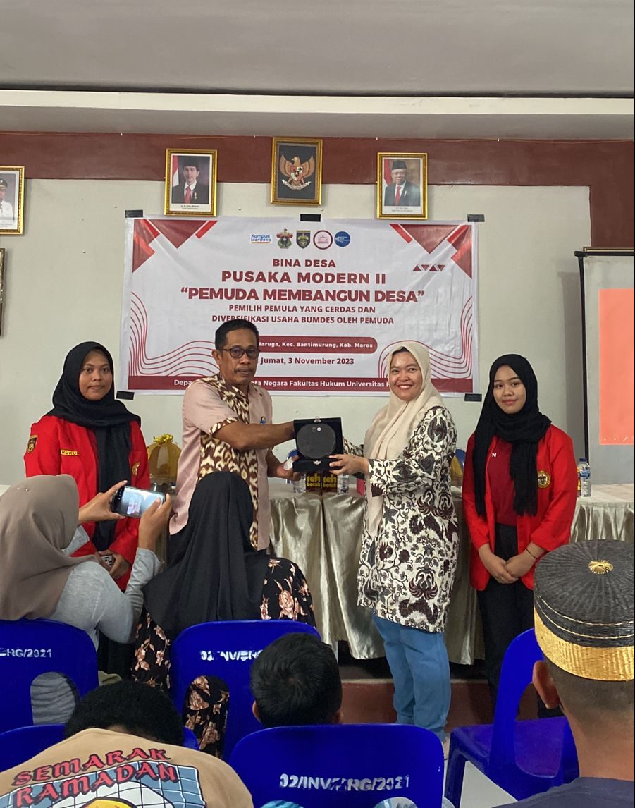 Kegiatan Bina Desa tersebut dikemas dalam bentuk penyuluhan hukum dengan topik “Pemilih Pemula yang Cerdas” yang dibawakan oleh Taufik Hidayat, S.H. dan “Diversifikasi Usaha BUMDes oleh Pemuda” yang dibawakan oleh Sardil Mutaalif, S.H. yang merupakan alumni Fakultas Hukum Unhas.
