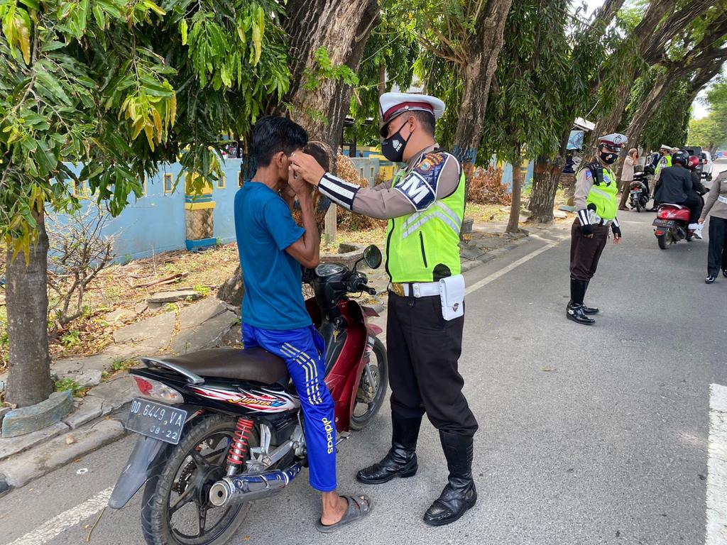 “Kegiatan hari ini melakukan teguran kepada penggendara yang tidak menggunakan masker dan kami juga membagikan masker kepada mereka yang kedapatan tidak menggunakan masker,” ucap IPTU Anwar.